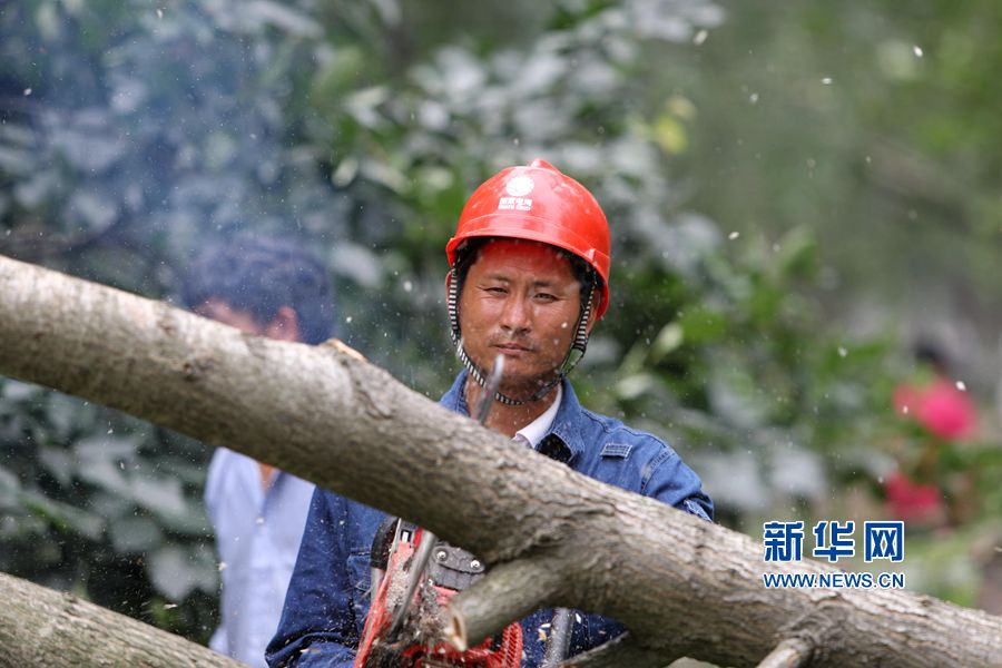 6月16日,永城電力黨員服務(wù)隊隊員在清除樹障。