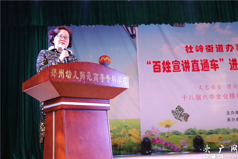 央廣網(wǎng)河南分網(wǎng)12月18日消息 12月15日、16日下午,正在金水區(qū)巡回宣講十八屆六中全會精神的鄭州市十八屆六中全會精神宣講團(tuán)成員、鄭州市工程技術(shù)學(xué)院呂村教授,在鄭州幼兒師范高等專科學(xué)校禮堂內(nèi),又登上了一個(gè)特殊的講臺,杜嶺街道辦事處“百姓宣講直通車”進(jìn)基層巡演活動的舞臺,繼續(xù)為近1500名觀眾宣講十八屆六中全會精神。