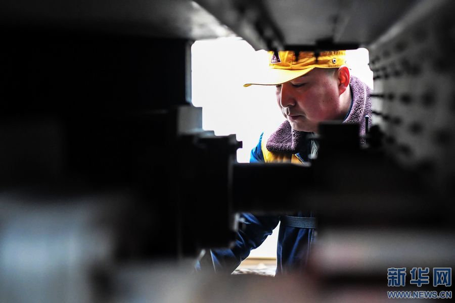 1月24日,一名調(diào)車員將止輪器放在車輪下,進(jìn)行防溜作業(yè)。 春節(jié)臨近,鐵路迎來節(jié)前客流高峰。鐵路運(yùn)輸工作中,離不開一群為火車“穿針引線”的人——調(diào)車員,他們24小時(shí)不間斷輪班,保證列車按時(shí)出入庫,并根據(jù)車次、客流的變化,對(duì)列車車廂進(jìn)行拆分和重新編組,保障春運(yùn)期間列車安全、準(zhǔn)時(shí)運(yùn)送旅客。 鄭州火車站運(yùn)轉(zhuǎn)車間調(diào)車長(zhǎng)程浩說:“我們的工作是把一節(jié)節(jié)車廂編組成一列火車,將其中有問題的車廂換掉,送檢、清洗,再將整列火車?yán)交疖囌景l(fā)車,形象點(diǎn)說就是為火車穿針引線!痹卩嵵莼疖囌具\(yùn)轉(zhuǎn)車間,調(diào)車小組一般由5人組成:一名調(diào)車長(zhǎng),四名組員。組長(zhǎng)負(fù)責(zé)指揮調(diào)車任務(wù),組員負(fù)責(zé)檢查和監(jiān)督列車車廂之間的分解與連掛,為車輛進(jìn)行排風(fēng)、摘管等。 春運(yùn)期間,鄭州火車站運(yùn)轉(zhuǎn)車間平均每天要對(duì)70余列近1300輛車進(jìn)行調(diào)車作業(yè),比平時(shí)增加30%左右的工作量。 新華社記者 李博 攝 -
