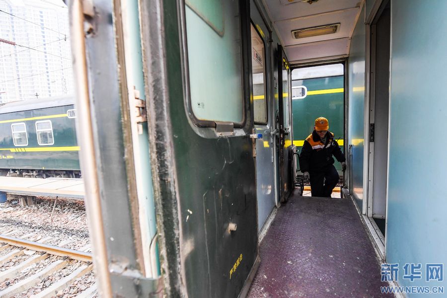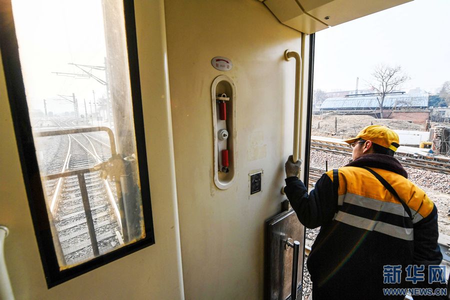 1月24日,一名調(diào)車員在車廂向外瞭望。 春節(jié)臨近,鐵路迎來節(jié)前客流高峰。鐵路運(yùn)輸工作中,離不開一群為火車“穿針引線”的人——調(diào)車員,他們24小時(shí)不間斷輪班,保證列車按時(shí)出入庫,并根據(jù)車次、客流的變化,對(duì)列車車廂進(jìn)行拆分和重新編組,保障春運(yùn)期間列車安全、準(zhǔn)時(shí)運(yùn)送旅客。 鄭州火車站運(yùn)轉(zhuǎn)車間調(diào)車長(zhǎng)程浩說:“我們的工作是把一節(jié)節(jié)車廂編組成一列火車,將其中有問題的車廂換掉,送檢、清洗,再將整列火車?yán)交疖囌景l(fā)車,形象點(diǎn)說就是為火車穿針引線!痹卩嵵莼疖囌具\(yùn)轉(zhuǎn)車間,調(diào)車小組一般由5人組成:一名調(diào)車長(zhǎng),四名組員。組長(zhǎng)負(fù)責(zé)指揮調(diào)車任務(wù),組員負(fù)責(zé)檢查和監(jiān)督列車車廂之間的分解與連掛,為車輛進(jìn)行排風(fēng)、摘管等。 春運(yùn)期間,鄭州火車站運(yùn)轉(zhuǎn)車間平均每天要對(duì)70余列近1300輛車進(jìn)行調(diào)車作業(yè),比平時(shí)增加30%左右的工作量。 新華社記者 李博 攝 -