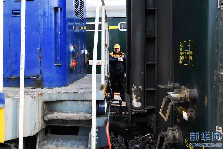 1月24日,一名調(diào)車員在進(jìn)行連掛車廂作業(yè)。 春節(jié)臨近,鐵路迎來節(jié)前客流高峰。鐵路運(yùn)輸工作中,離不開一群為火車“穿針引線”的人——調(diào)車員,他們24小時(shí)不間斷輪班,保證列車按時(shí)出入庫,并根據(jù)車次、客流的變化,對(duì)列車車廂進(jìn)行拆分和重新編組,保障春運(yùn)期間列車安全、準(zhǔn)時(shí)運(yùn)送旅客。 鄭州火車站運(yùn)轉(zhuǎn)車間調(diào)車長(zhǎng)程浩說:“我們的工作是把一節(jié)節(jié)車廂編組成一列火車,將其中有問題的車廂換掉,送檢、清洗,再將整列火車?yán)交疖囌景l(fā)車,形象點(diǎn)說就是為火車穿針引線!痹卩嵵莼疖囌具\(yùn)轉(zhuǎn)車間,調(diào)車小組一般由5人組成:一名調(diào)車長(zhǎng),四名組員。組長(zhǎng)負(fù)責(zé)指揮調(diào)車任務(wù),組員負(fù)責(zé)檢查和監(jiān)督列車車廂之間的分解與連掛,為車輛進(jìn)行排風(fēng)、摘管等。 春運(yùn)期間,鄭州火車站運(yùn)轉(zhuǎn)車間平均每天要對(duì)70余列近1300輛車進(jìn)行調(diào)車作業(yè),比平時(shí)增加30%左右的工作量。 新華社記者 李博 攝 -