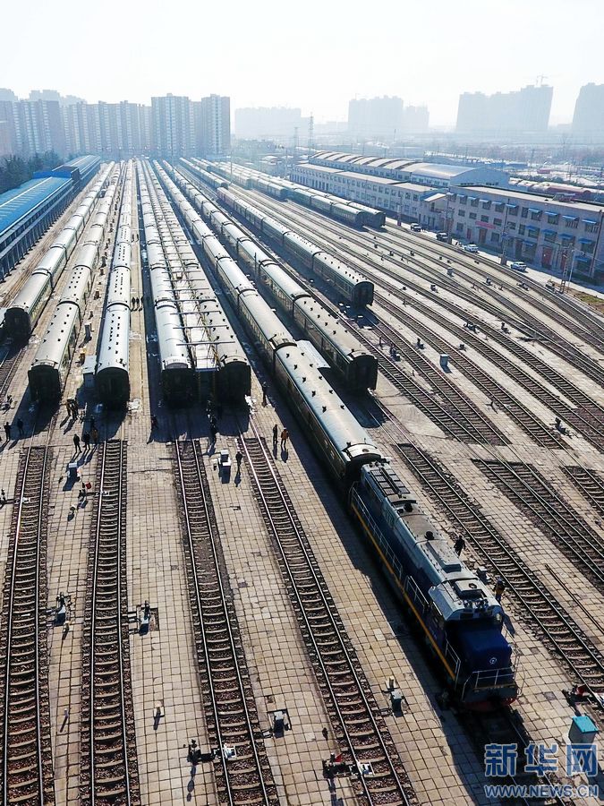一列客車在完成編組后,駛向鄭州火車站(1月20日攝)。 春節(jié)臨近,鐵路迎來節(jié)前客流高峰。鐵路運(yùn)輸工作中,離不開一群為火車“穿針引線”的人——調(diào)車員,他們24小時(shí)不間斷輪班,保證列車按時(shí)出入庫,并根據(jù)車次、客流的變化,對(duì)列車車廂進(jìn)行拆分和重新編組,保障春運(yùn)期間列車安全、準(zhǔn)時(shí)運(yùn)送旅客。 鄭州火車站運(yùn)轉(zhuǎn)車間調(diào)車長(zhǎng)程浩說:“我們的工作是把一節(jié)節(jié)車廂編組成一列火車,將其中有問題的車廂換掉,送檢、清洗,再將整列火車?yán)交疖囌景l(fā)車,形象點(diǎn)說就是為火車穿針引線!痹卩嵵莼疖囌具\(yùn)轉(zhuǎn)車間,調(diào)車小組一般由5人組成:一名調(diào)車長(zhǎng),四名組員。組長(zhǎng)負(fù)責(zé)指揮調(diào)車任務(wù),組員負(fù)責(zé)檢查和監(jiān)督列車車廂之間的分解與連掛,為車輛進(jìn)行排風(fēng)、摘管等。 春運(yùn)期間,鄭州火車站運(yùn)轉(zhuǎn)車間平均每天要對(duì)70余列近1300輛車進(jìn)行調(diào)車作業(yè),比平時(shí)增加30%左右的工作量。 新華社記者 李博 攝