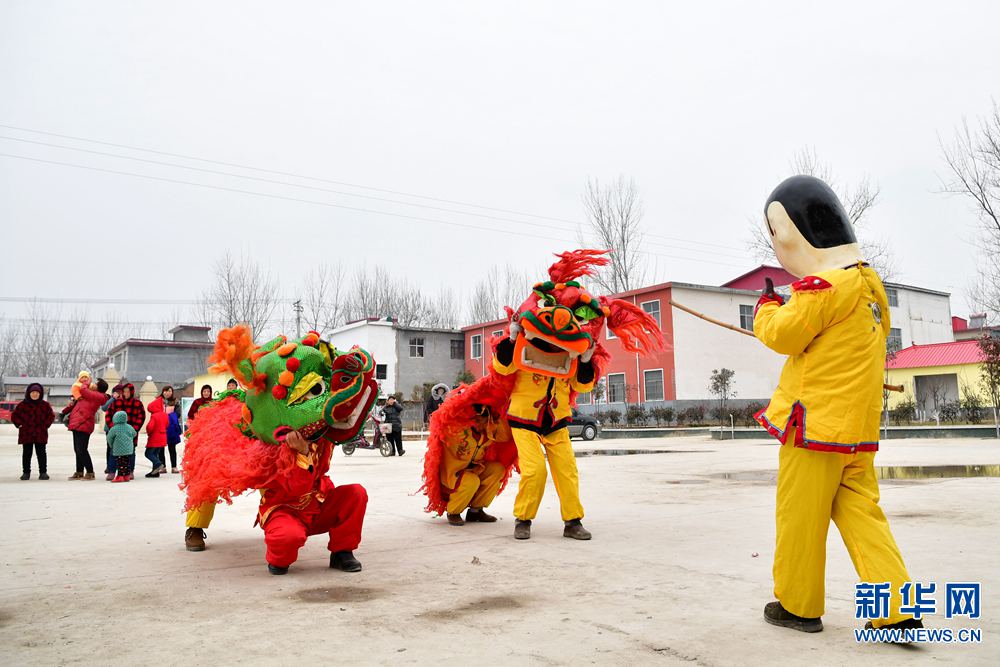2月7日,村民在羅閣村文化舞臺表演舞獅。 當日,河南省駐馬店市西平縣盆堯鎮(zhèn)羅閣村的文化舞臺熱鬧非凡,村民表演了舞獅、豬八戒背媳婦、抬轎子、劃旱船、騎竹馬、吹喇叭等民俗節(jié)目,吸引眾多村民前來觀看。新華社記者馮大鵬攝 -