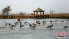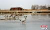 2月16日,地處甘肅河西走廊,祁連山下的張掖市,在春風(fēng)的吹拂下,氣候開(kāi)始溫暖起來(lái)。在張掖國(guó)家濕地公園里,湖水冰面開(kāi)始消融,一群斑頭雁在此嬉戲、覓食。它們有站的,有臥的,還有小心翼翼在冰面上行走的,萌態(tài)十足。 陳禮 攝 -