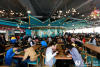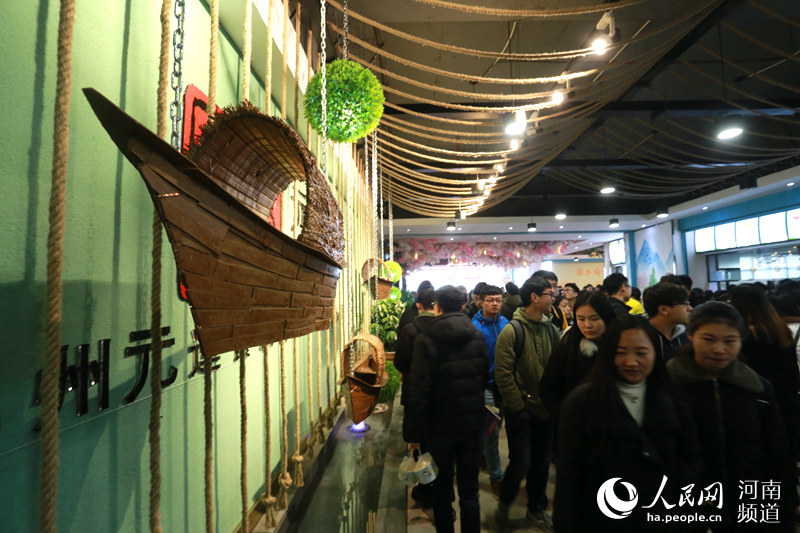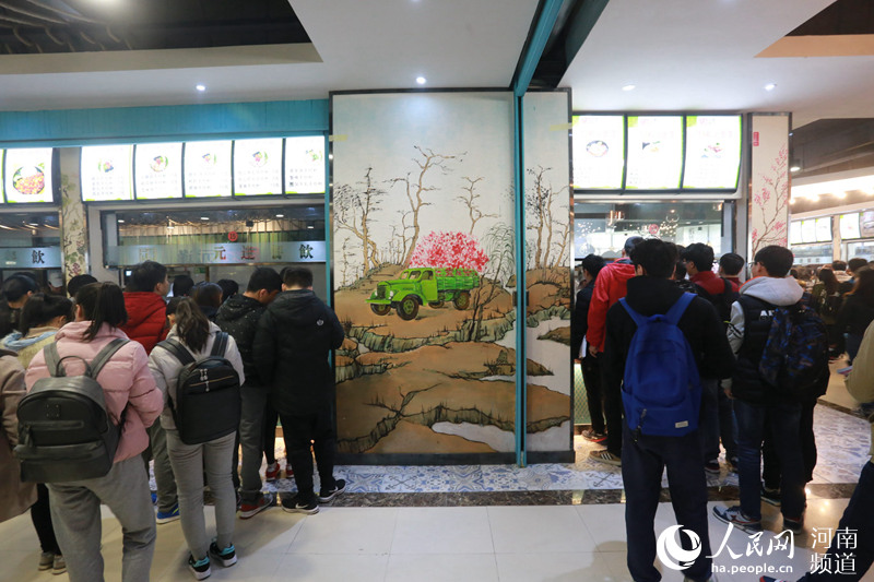 新學(xué)期開學(xué),鄭州華北水利水電學(xué)校的學(xué)生們發(fā)現(xiàn),學(xué)校食堂發(fā)生了巨大變化,曾經(jīng)冷冷清清的餐廳如今卻人頭攢動,熱鬧非凡。2月26日,在河南鄭州華北水利水電大學(xué),記者看到,學(xué)生們排隊在裝扮一新的學(xué)校食堂里就餐。曾經(jīng)的硬座桌凳換成了軟座桌椅,屋頂以星空為主題背景,獨特的燈飾造型,十二星座圖案,山水、動物、人物繪畫,池塘里游來游去的金魚、蓮藕將環(huán)境布置的十分溫馨、雅致,炫美。據(jù)學(xué)校食堂承包方負責人稱,為了給學(xué)生們營造良好的就餐環(huán)境,他們投資近200萬元將學(xué)校餐廳改造一新,呈現(xiàn)出了全新的風格。“環(huán)境變美了,但飯菜質(zhì)量和價格沒變,依然和過去一樣。”楊正華/攝 -