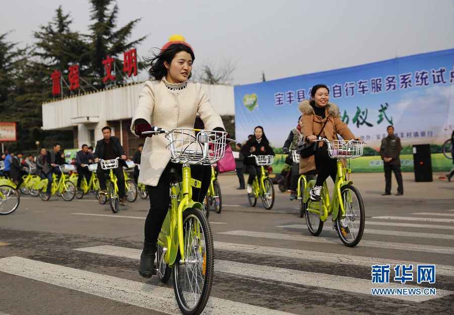 3月6日,在河南省寶豐縣,居民體驗(yàn)剛投入使用的公共自行車。當(dāng)日,河南省寶豐縣啟動(dòng)公共自行車服務(wù)系統(tǒng),首批共設(shè)置35個(gè)公共自行車租賃點(diǎn),投放自行車近1000輛。居民可憑身份證辦理租車卡或直接使用支付寶、手機(jī)客戶端在租賃點(diǎn)取還車。據(jù)了解,寶豐縣公共自行車服務(wù)系統(tǒng)采用政府主導(dǎo)、企業(yè)出資、市場(chǎng)運(yùn)作的模式實(shí)施。站點(diǎn)主要集中在縣城人流密集場(chǎng)所,以方便居民綠色出行。新華社發(fā)(何五昌 攝) -