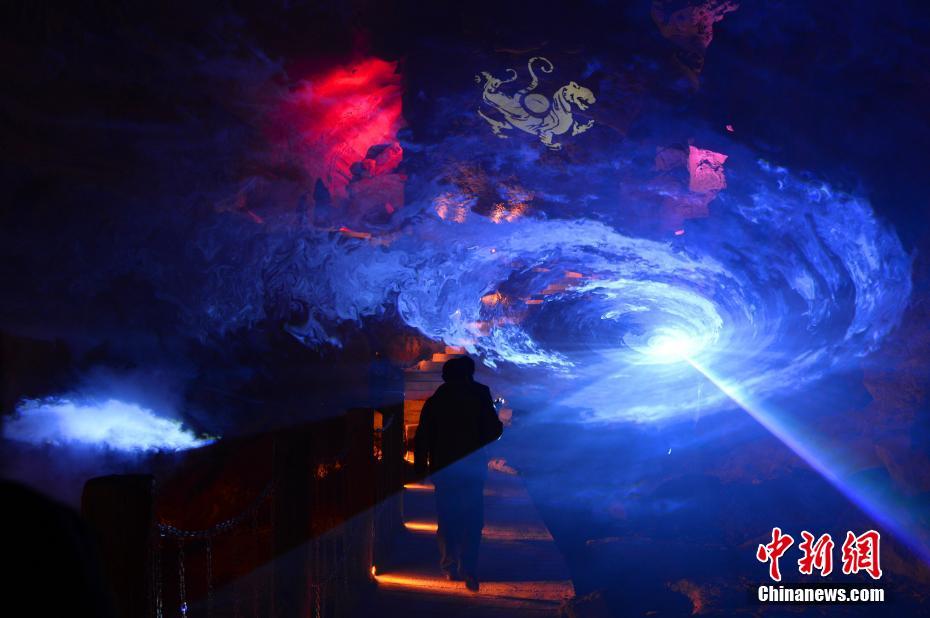 3月6日,來自全國(guó)的百余名游客慕名來到湖北五峰土家族自治縣長(zhǎng)生洞,觀看洞內(nèi)的“崖壁星空”景觀首秀。長(zhǎng)生洞位于北緯30°地理圈,其形成距今約1.4億年,洞口巧生東西峭壁間,縱深300米,橫跨1500米,上下三層,高約50至100米。洞內(nèi)分布著“穿越時(shí)空”“轉(zhuǎn)世蓮花”“崖壁星空”等20多處景點(diǎn),千姿百態(tài)的鐘乳石與七彩幻燈交相輝映,讓人在欣賞后嘆為觀止。五峰縣位于湖北省西南部,以喀斯特地貌為主,平均海拔1100米,是一個(gè)少數(shù)民族山區(qū)縣。鐘欣 攝 -