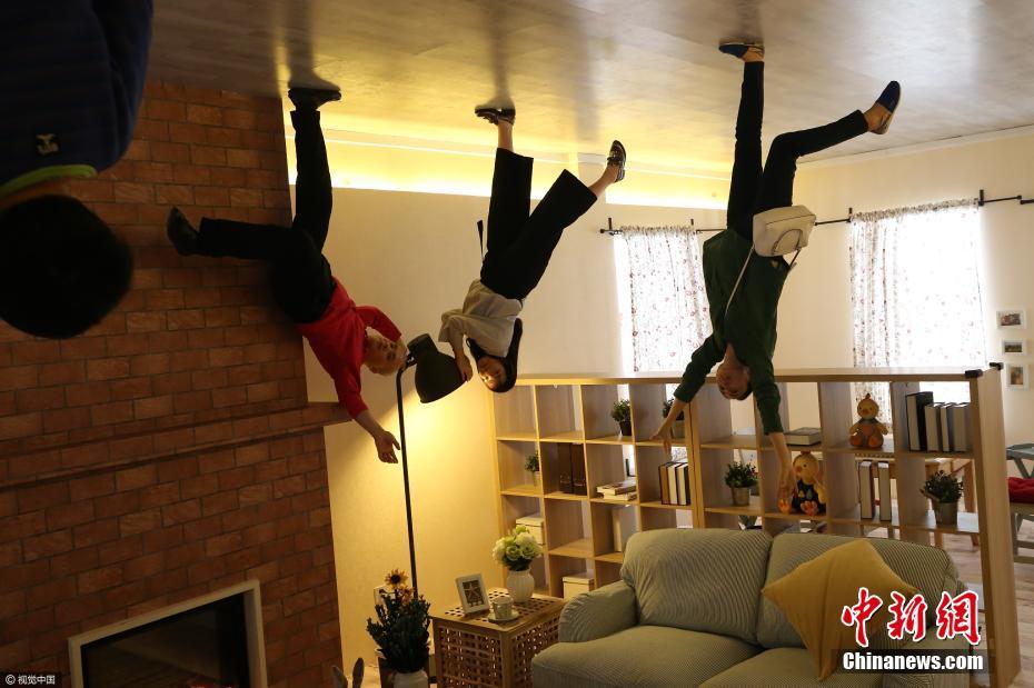 2017年4月8日,風(fēng)靡全球的創(chuàng)意趣味顛倒屋現(xiàn)身重慶大坪龍湖時(shí)代天街。它是目前中國(guó)內(nèi)地唯一,且與臺(tái)北、高雄兩個(gè)城市的顛倒屋“同款”的奇特建筑,歷時(shí)數(shù)月傾心打造。顛倒屋乍看外表是一棟充滿小清新氣息、刷著冰淇淋色墻漆的倒立小洋房,可當(dāng)你走進(jìn)這個(gè)世界才會(huì)猛然發(fā)現(xiàn):原來(lái)這里能讓所有進(jìn)入這個(gè)世界的事物都徹底顛倒!包括餐桌上熱氣騰騰的火鍋、塞滿裙子的衣柜、車庫(kù)里的萌系汽車……都給人一種強(qiáng)烈的視覺(jué)沖擊感。參觀過(guò)程中,游客一邊體驗(yàn)顛倒屋內(nèi)精致的陳設(shè),同時(shí)在努力克服顛覆習(xí)慣的視覺(jué)感受,游覽一圈下來(lái),“時(shí)空倒錯(cuò)”、“神魂顛倒”、“飛檐走壁”等都成為游客口中不約而同的感受。圖片來(lái)源:視覺(jué)中國(guó)
