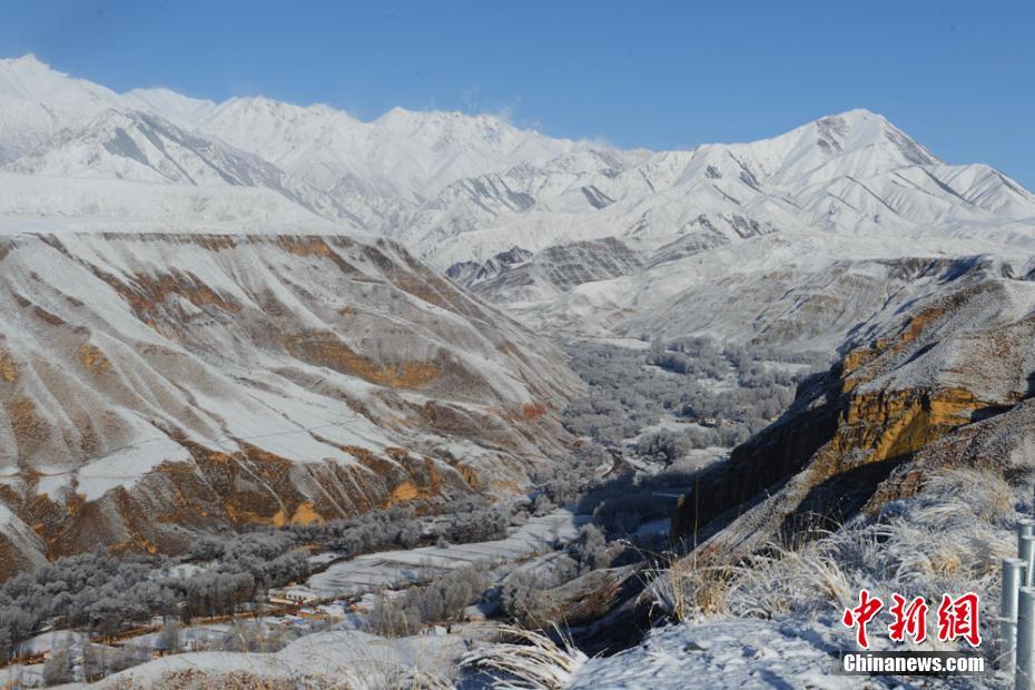 4月16日,地處祁連山腳下的甘肅肅南裕固族自治縣現(xiàn)唯美霧凇景觀。晶瑩的霜花、冰凝附著在樹枝上,遠望銀裝素裹,潔白一片,宛如仙境。由于連續(xù)降雪,當?shù)夭菰e雪最厚達10厘米,并出現(xiàn)大霧,驟降的氣溫使得消融的河水重新結冰,蒼茫大地一片銀裝素裹。武雪峰 攝 -