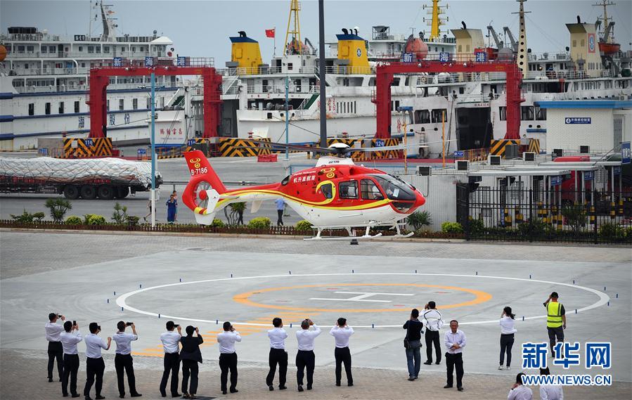 4月28日,直升飛機(jī)在?谛潞8鄞a頭降落。當(dāng)日,北京首航直升機(jī)股份有限公司聯(lián)合海南港航控股股份有限公司在?谛潞8叟e行瓊州海峽直升機(jī)擺渡飛行開航儀式。首航直升機(jī)運(yùn)營的空客H135型直升機(jī),從海南省?谛潞8鄞a頭起飛,飛往廣東省湛江市徐聞海安港,空中飛行時間僅需10分鐘,比傳統(tǒng)輪渡快了2個多小時,單人票價為898元。新華社記者郭程攝 -