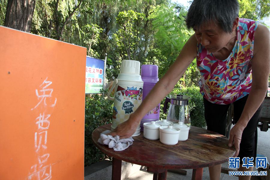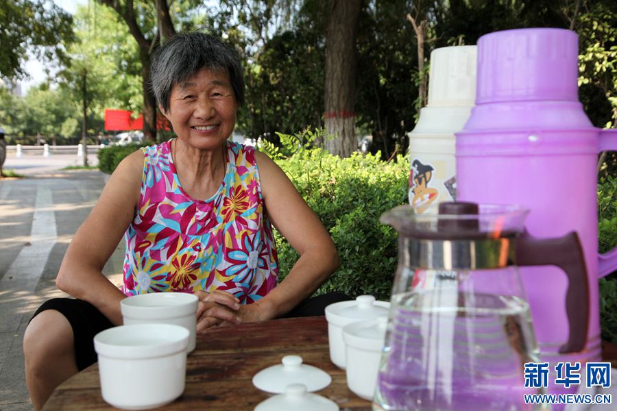 到“免費茶攤”喝水的有附近的環(huán)衛(wèi)工,有路過的民工,也有普通市民。“只要身體允許,我以后每年伏天都免費為路人提供茶水。”段守蘭堅定地說。新華網(wǎng)發(fā)(牛書培 攝) -