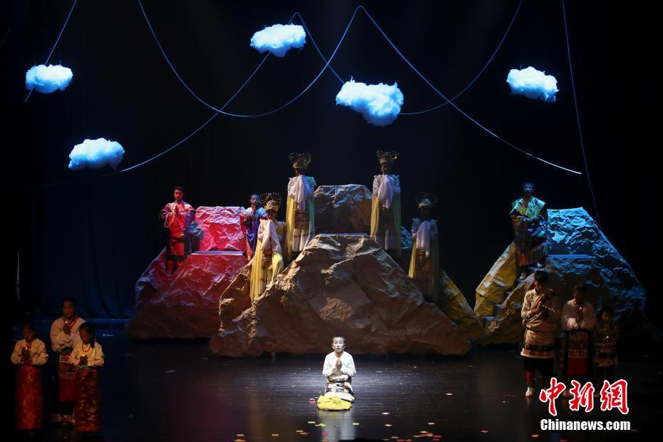 藏式音樂劇《騎風(fēng)馬的旦措》排練時間雖短,但藏式戲劇風(fēng)格在表演中取得了不錯的演出效果。中新社記者 盛佳鵬 攝 -