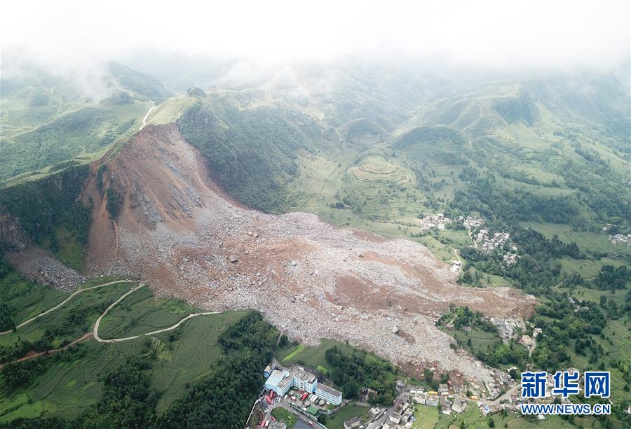 航拍山體滑坡現(xiàn)場(8月29日攝)。截至8月29日16時30分,貴州省納雍縣山體崩塌地質(zhì)災害救援現(xiàn)場已搜救出25人,其中17人死亡、8人受傷,目前尚有18人失聯(lián)。據(jù)悉,崩塌山體距離災害地垂直落差約200米,崩塌巖體約為60余萬立方米。災害發(fā)生后,當?shù)亟M織專業(yè)力量全力以赴晝夜不休開展救援。新華社記者陶亮攝 -