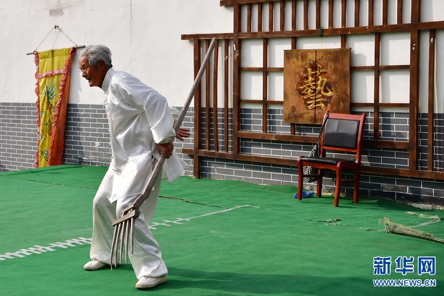在河南省濮陽市華龍區(qū)岳村鄉(xiāng)東北莊村一個雜技小院,東北莊著名雜技流派“喬家班”的第六代傳人、年近八旬的喬金生用杈把表演雜技(11月21日攝)。 中原地區(qū)是中國雜技的主要起源地之一,中原雜技首推河南濮陽,濮陽雜技源自東北莊。東北莊同河北吳橋并稱為“中國雜技南北故里”。 如今的東北莊,村里以雜技為主題的文化墻到處都是,雜技小院每天熱鬧非凡,明清小巷依然有不少孩童在練習(xí),專業(yè)雜技學(xué)校迎來四海學(xué)員……雜技,讓古老的東北莊煥發(fā)生機和活力,也在改變著這里人民的生活。 新華社記者馮大鵬攝 -