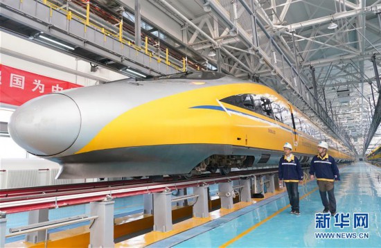 10月7日,一輛綜合檢測(cè)列車駛出京張高鐵北京北動(dòng)車所。 日前,京張高鐵聯(lián)調(diào)聯(lián)試工作正式啟動(dòng),位于北京市昌平區(qū)的京張高鐵北京北動(dòng)車所也隨之投入使用,未來(lái)將承擔(dān)京張高鐵動(dòng)車組的檢修和整備等工作。京張高鐵起自北京北站,終點(diǎn)為張家口站,正線全長(zhǎng)174公里,是2022年北京冬奧會(huì)的重要交通保障設(shè)施。開通運(yùn)營(yíng)后乘高鐵從北京到張家口的時(shí)間將縮短至1小時(shí)以內(nèi)。 新華社記者 馬寧 攝 -
