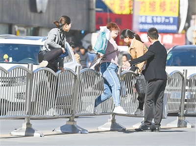 對(duì)此,交警部門加大對(duì)該路段的非機(jī)動(dòng)車和行人的管理力度,著重治理百腦匯門口行人翻越護(hù)欄的違法行為。昨日上午,市交警五大隊(duì)在東風(fēng)路與文博西路開展行人翻越護(hù)欄交通違法集中整治行動(dòng)。