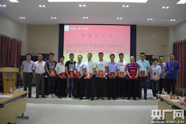 央廣網(wǎng)河南分網(wǎng)8月16日消息 導(dǎo)師帶徒活動作為中建二局二公司中原分公司的品牌活動,尤其受到了領(lǐng)導(dǎo)的高度重視。為了保障活動的有效落地,發(fā)揮出“傳、幫、帶”的作用,前期由人力資源部及團委認真策劃、精心籌備,共對13個導(dǎo)師帶徒活動點進行全覆蓋參與。中原分公司總部作為導(dǎo)師帶徒活動的最后一站,8月11日,2017屆新員工導(dǎo)師帶徒拜師儀式暨2016年優(yōu)秀師徒表彰會在分公司蒼狼學(xué)院隆重召開。