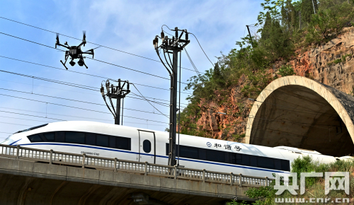 央廣網(wǎng)鄭州6月16日消息 6月8日15時20分,在鄭西高鐵余頂隧道西端附近,一架特制的黑色無人機從地面“一躍而起”,上升至50多米的高空后懸停 ,“俯瞰”著整個隧道口。