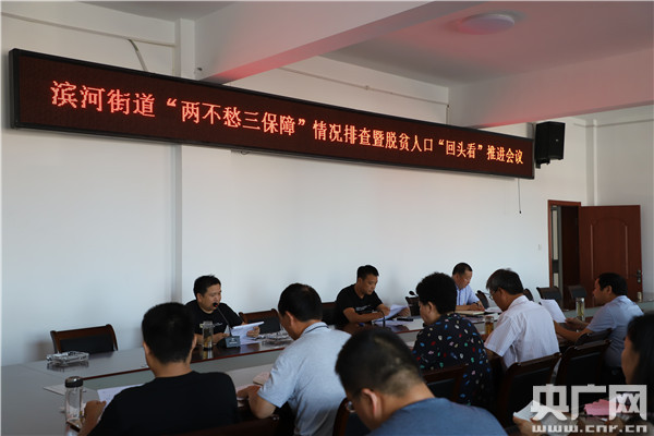 “馮崗社區(qū)王吉漢雖然脫貧了,但最近生病住院了,曉東,你是他的幫扶責(zé)任人,他家里目前收入情況會不會返貧?”“他雖然住院了,但他享受了六次報銷政策,對他的生活基本上沒有影響。”濱河街道馮崗社區(qū)脫貧責(zé)任組組長劉偉正在主持召開居民貧困發(fā)生情況研判會。