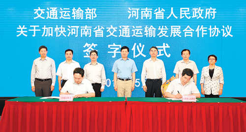 5月22日,河南省人民政府與交通運輸部在鄭州簽署《關(guān)于加快河南省交通運輸發(fā)展合作協(xié)議》。(本報記者 董亮 攝)