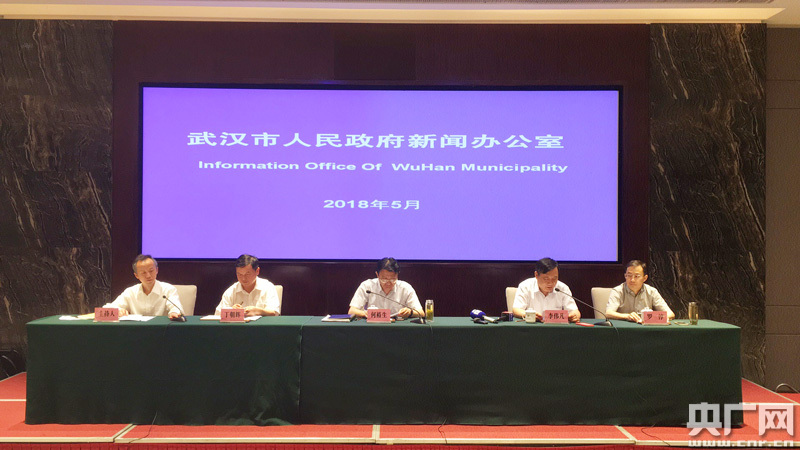 圖為:武漢市招才局和房管局相關負責人介紹情況