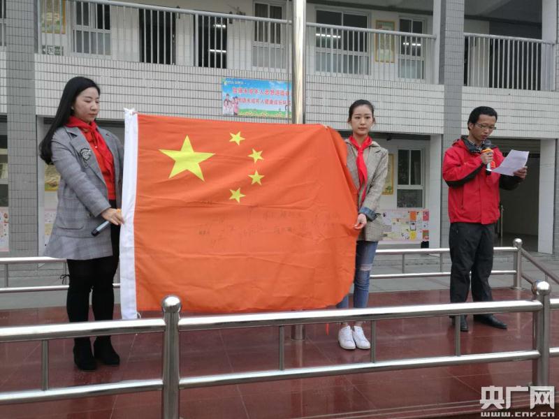 第32次南極科考隊隊員、十堰氣象臺高級工程師文強,將南極科考站懸掛過的一面國旗,贈送給十堰市實驗小學,并向師生們講述了這面國旗的巨大含義。據(jù)了解,這面國旗上有第32次南極科考站全部隊員的簽名,這面國旗將收藏在十堰市實驗小學校史館里。