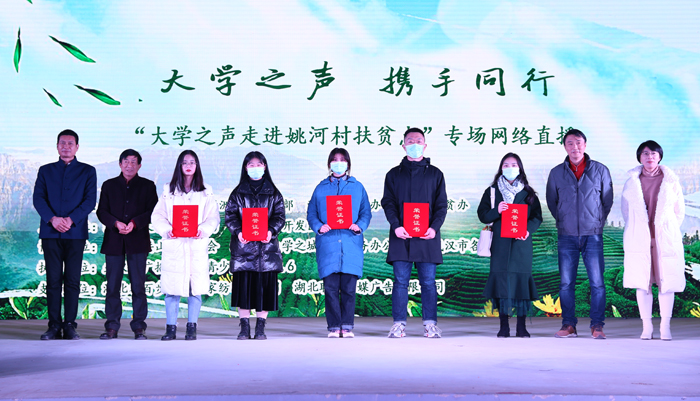 12月10日下午,由洪山區(qū)委宣傳部、新洲區(qū)委宣傳部、洪山區(qū)扶貧辦、新洲區(qū)扶貧辦、洪山區(qū)文化和旅游局、洪山經(jīng)濟(jì)開(kāi)發(fā)區(qū)管委會(huì)、共青團(tuán)洪山區(qū)委員會(huì)、洪山區(qū)大學(xué)之城建設(shè)服務(wù)辦公室聯(lián)合武漢廣播電視臺(tái)青少?gòu)V播共同推出“大學(xué)之聲走進(jìn)姚河村扶貧點(diǎn)”專場(chǎng)網(wǎng)絡(luò)直播活動(dòng),與武漢市近10家高校師生代表30多人走進(jìn)新洲區(qū)舊街街姚河村,見(jiàn)證2020年武漢市精準(zhǔn)扶貧脫貧攻堅(jiān)收官之年的豐碩成果。
