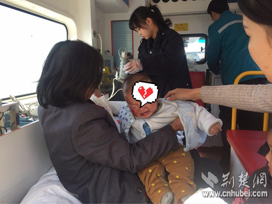 嬰兒在救護(hù)車上接受治療。高警蔡甸大隊供圖