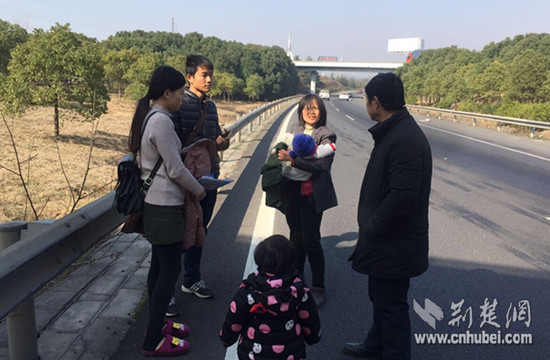 一家人等待救護(hù)車。高警蔡甸大隊供圖
