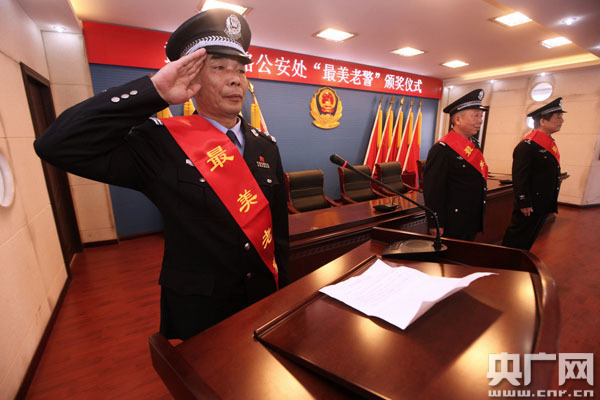 ”明天他們將褪去這身警服,這個不舍的敬禮他希望青年民警能很好的傳承下去“3月29日下午15時,武漢鐵路公安處隆重舉行春運”最美老警“頒獎儀式,最美老警正在授獎