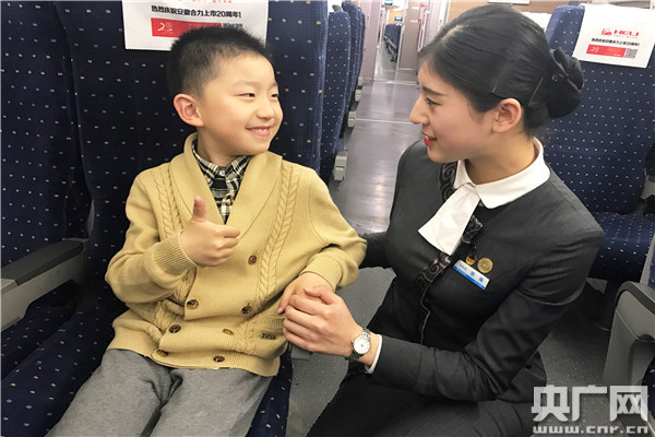 央廣網(wǎng)武漢5月4日消息(通訊員易娜)在宜昌東開往北京西的G516次動車上,獨自帶著自己孩子乘車的武女士因為辦理了車票延長而沒有座位在車廂內(nèi)徘徊。乘務(wù)員看到以后立刻將她帶到了人不多的餐車車廂并幫她安排好座位,乘務(wù)員的暖心舉動讓她很感動!拔腋杏X他們的服務(wù)特別熱情,我很感謝她們,因為我自己帶孩子在外面挺累的,以前坐高鐵我得抱著她,這次坐高鐵,把我們領(lǐng)到這,我挺感謝她們的!