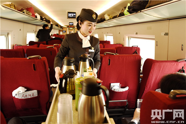 這趟列車上的乘務(wù)員就來自武漢客運段“鳳舞楚天”乘務(wù)組!傍P舞楚天”乘務(wù)組是武漢鐵路局武漢客運段一個年輕的集體,平均年齡只有25歲。從2015年成立至今,她們用創(chuàng)新和服務(wù)獲得了乘客的大量好評。