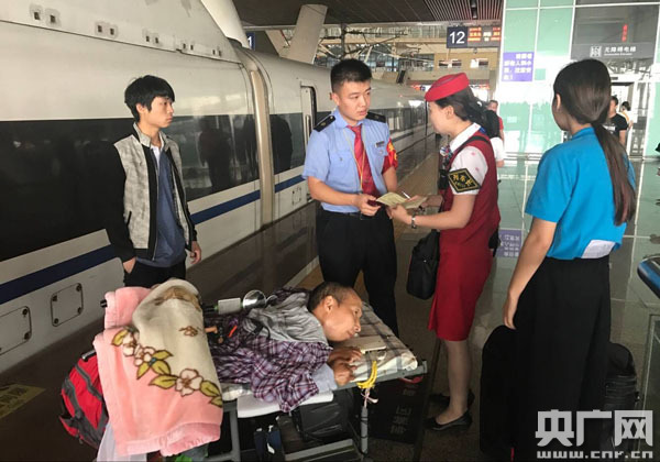 央廣網(wǎng)荊州6月6日消息(記者張卓 通訊員周運(yùn)華 李婷)6月6日,一重病旅客乘高鐵從荊州經(jīng)武漢轉(zhuǎn)乘前往昆明,武漢客運(yùn)段站車(chē)聯(lián)動(dòng)開(kāi)辟綠色通道,幫助重病旅客順利轉(zhuǎn)乘。
