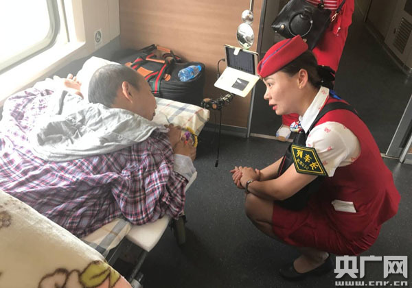 上午9點(diǎn)19分左右,由武漢客運(yùn)段擔(dān)當(dāng)?shù)腉1034次高鐵動(dòng)車(chē)組列車(chē)?吭谇G州站。此時(shí),荊州車(chē)站送來(lái)一名重病旅客,據(jù)了解,該旅客患有強(qiáng)制性關(guān)節(jié)炎,全身除了眼睛能動(dòng)外,四肢都無(wú)法伸直,全部彎曲在頭部的兩邊。當(dāng)班列車(chē)長(zhǎng)李婷了情況解后,立即與其他旅客協(xié)商對(duì)座位進(jìn)行調(diào)整,在她的動(dòng)員下,許多旅客紛紛相讓,給重病旅客營(yíng)造了一個(gè)寬松的乘車(chē)環(huán)境。