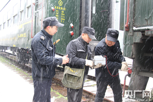 央廣網(wǎng)武漢1月5日消息(記者張卓 通訊員方昉)1月3日,武昌客車車輛段管轄信陽地區(qū)急劇降溫、突降大雪,信陽客車整備場迅速被積雪覆蓋,路面結(jié)冰濕滑,在春運(yùn)臨客整修的關(guān)鍵時(shí)期,為了確保庫內(nèi)生產(chǎn)秩序和列車、人身安全,該車間立即啟動(dòng)應(yīng)急預(yù)案,組織突擊隊(duì)清掃道岔積雪、鋪設(shè)防滑草墊;組織管理人員現(xiàn)場盯控重點(diǎn)環(huán)節(jié)作業(yè);各班組加強(qiáng)了關(guān)鍵環(huán)節(jié)作業(yè)安全控制,保證了入庫列車的安全、正點(diǎn)和臨客拉口整修質(zhì)量,為旅客安全出行打好安全攻堅(jiān)戰(zhàn)。