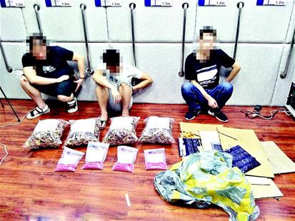 武漢海關(guān)緝私局昨透露,本月12日在警方配合下,攜緝私犬“金光”“芬迪”實(shí)施查緝,打掉一個(gè)從緬甸走私毒品到漢銷(xiāo)售的團(tuán)伙,抓獲嫌疑人3名,查獲麻果12000顆。毒品系從緬甸走私入境到云南邊境勐?h城后,再借快遞渠道郵寄到漢,毒品暗藏快遞包裹中,以干蘑菇作掩護(hù)。楚天都市報(bào)記者謝玲 通訊員何宇翔 袁劍 實(shí)習(xí)生盧建敏攝影報(bào)道