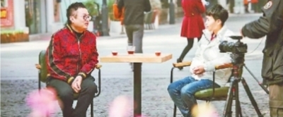 2月3日上午,在黎黃陂路步行街,陽光透過樹叢灑落在青石板上,路兩邊掛起了紅燈籠,車流、人流穿梭不息,透出濃濃年味。馬路側(cè)邊,一張桌子、三張凳子、一個移動書房,形成一個露天訪談室,有基層干警、社區(qū)工作者、醫(yī)護人員、志愿者、餐飲服務(wù)業(yè)人員依次來到這里,聊工作、述鄉(xiāng)愁,暢聊武漢本土年味。