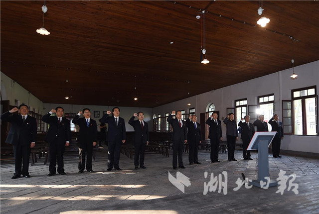 蔣超良帶領省委常委到武昌農(nóng)講所舊址重溫入黨誓詞時表示