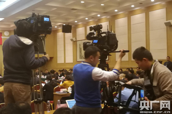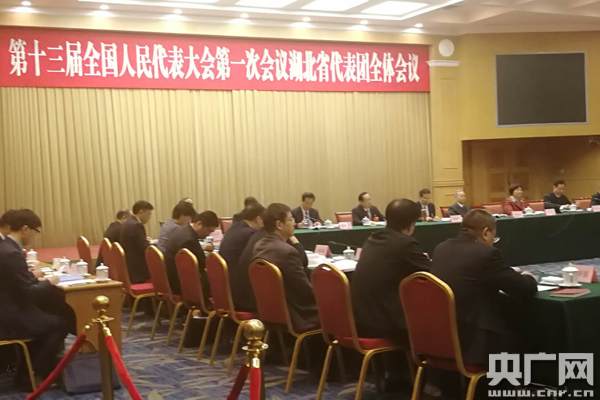 圖為:第十三屆全國人民代表大會第一次會議湖北省代表團開放日現(xiàn)場