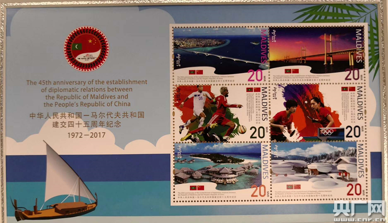 圖為:中國(guó)-馬爾代夫建交45周年特別紀(jì)念郵票(中交二航局供圖)