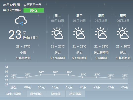 具體預(yù)報(bào):12日白天多云有陣雨,氣溫23℃—27℃,偏北風(fēng)2—3級(jí);12日晚到13日白天陣雨轉(zhuǎn)多云,氣溫23℃—28℃,偏北風(fēng)2—3級(jí);13日晚到14日白天多云,氣溫21℃—28℃,偏北風(fēng)2—3級(jí)。