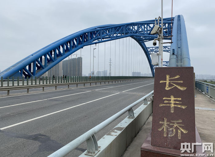 圖為:武漢長(zhǎng)豐橋正在進(jìn)行交通管制 記者王超 攝