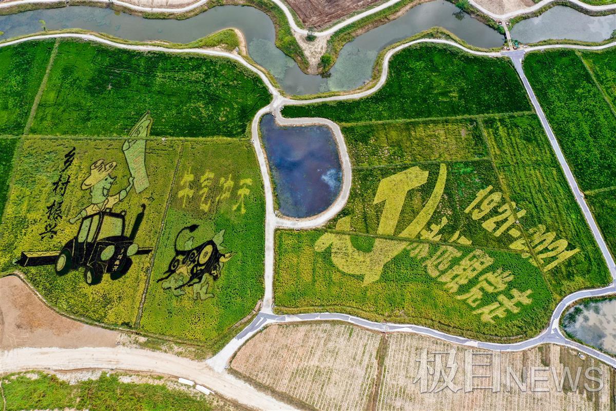 以大地為畫板、水稻為墨,一幅幅生動的畫作展現(xiàn)在眼前。眼下,武漢市黃陂區(qū)的水稻田里即將迎來收獲的季節(jié),而在黃陂區(qū)木蘭大道旁,羅漢街的研子村,這里的40畝稻田呈現(xiàn)出3幅畫作,讓人驚嘆。
