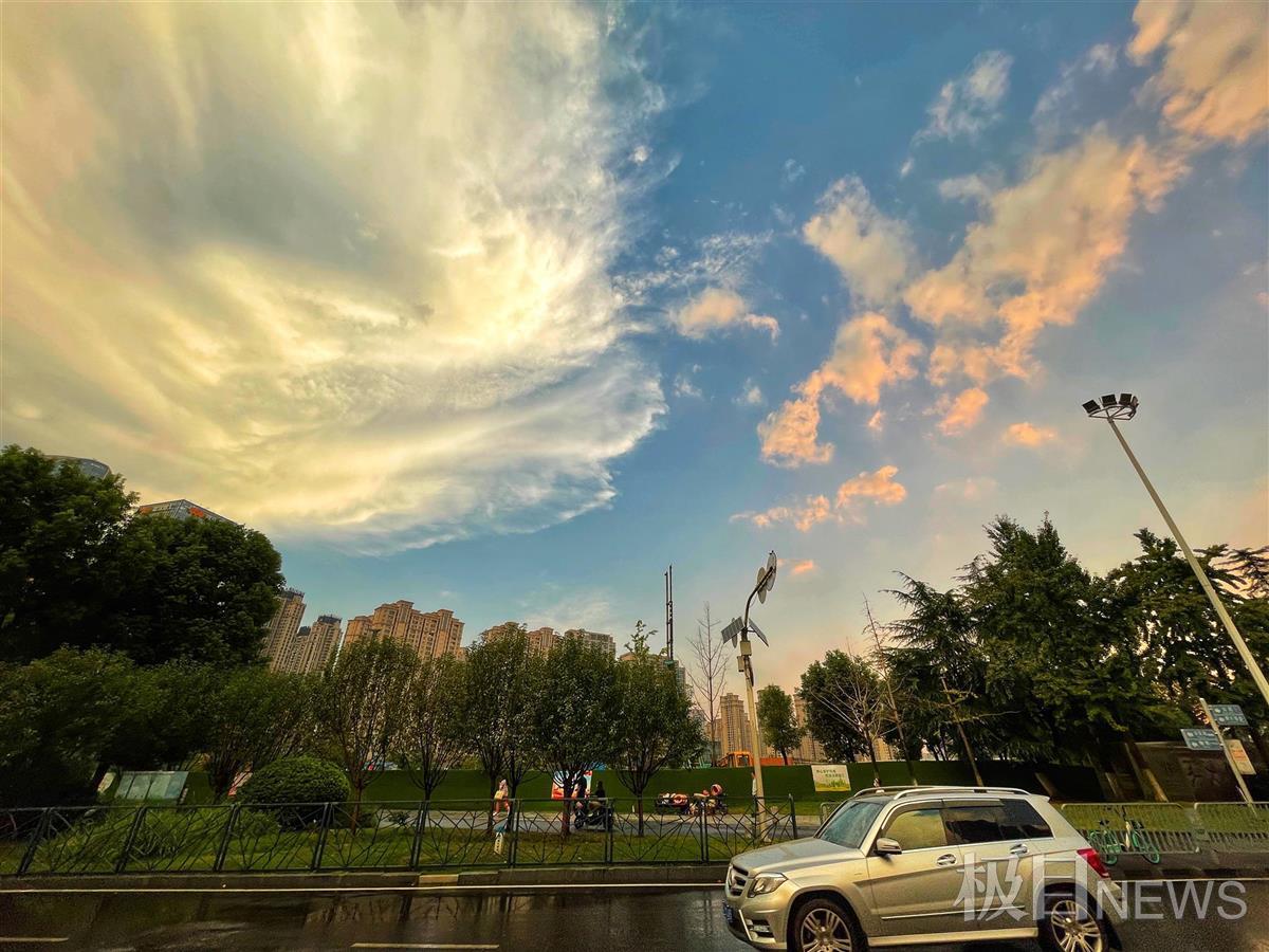 9月24日下午5時(shí)30分左右,一場突如其來的暴雨降臨江城武漢,大雨給出行的人們增添了些許麻煩,但雨后美麗的晚霞卻給大家?guī)砹藟艋冒愕母杏X。