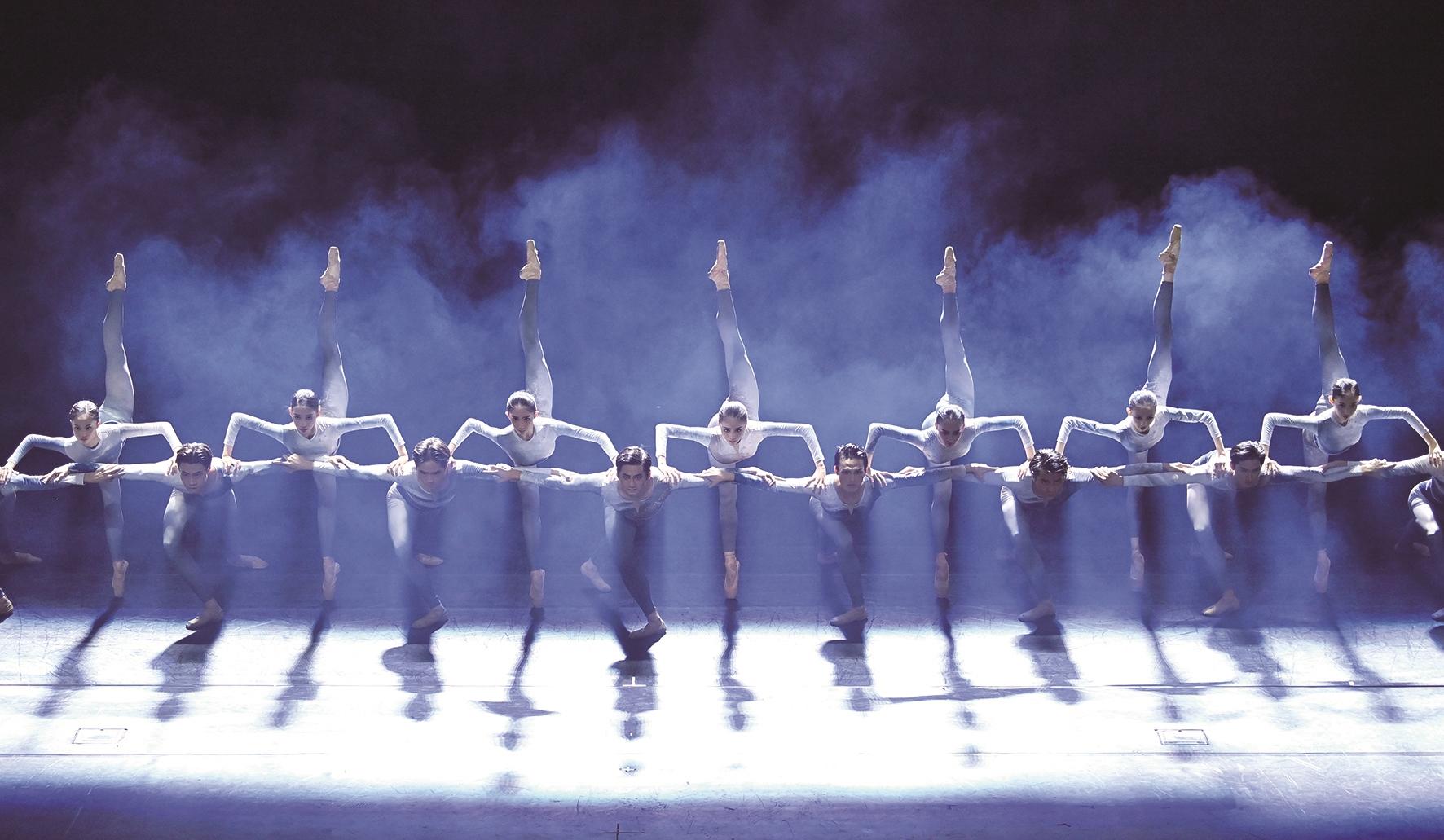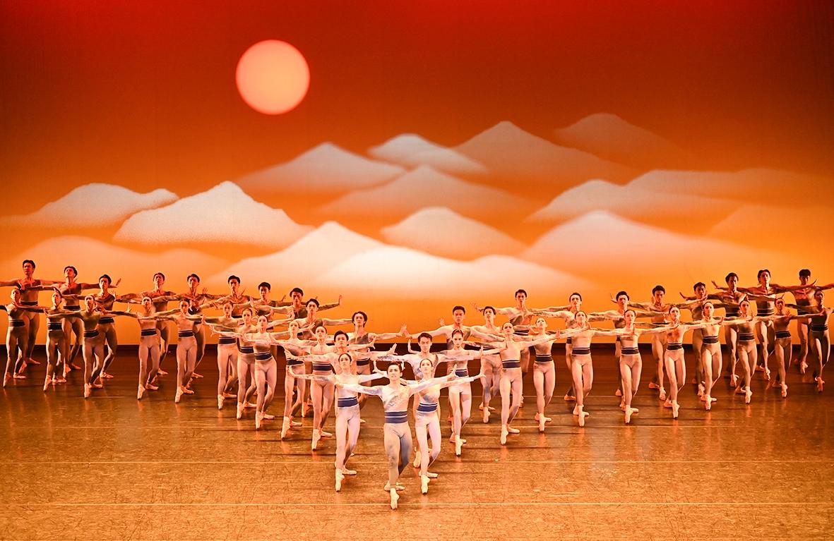 當“人在山河在”的激昂旋律從耳邊流入心田,舞臺上的藝術家們用鏗鏘有力的舞蹈全景再現(xiàn)了建設者們披甲執(zhí)銳、無畏逆行的畫面。在渾厚抒情、激昂交錯的音樂鋪設下,在氣勢磅礴、步伐鏗鏘的芭蕾群舞映托下,一列列、一行行芭蕾舞者用肢體編織、組合、構建起波瀾壯闊的英雄場景、山河圖卷。舞臺上每一位奮力起舞的舞者,仿佛是一年多前與疫情競速、和病魔賽跑的建設者化身。