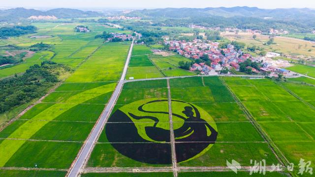 8月9日,一個(gè)直徑約200米的“嫦娥”圖案出現(xiàn)在咸寧市咸安區(qū)高橋鎮(zhèn)的稻田里。 咸安區(qū)是嫦娥文化之鄉(xiāng),湖北文化旅游投資集團(tuán)有限公司在當(dāng)?shù)亟ㄔO(shè)田園綜合體項(xiàng)目,打造白水畈美麗村灣。這個(gè)占地400多畝的七彩稻田景點(diǎn),栽種彩色水稻、巨型稻等特殊品種并拼成圖案,是首個(gè)完工的項(xiàng)目。