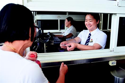 正值暑運(yùn)高峰期,武昌火車(chē)站售票大廳內(nèi)人頭攢動(dòng),楊濤在售票窗口里幫旅客出票。