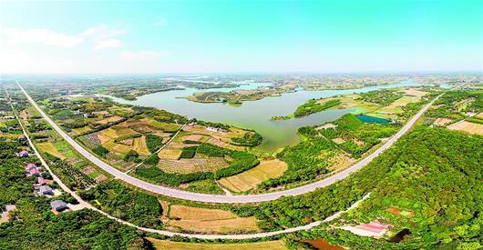 9月 23日,從高空俯視,荊(州)當(dāng)(陽)旅游公路在青山綠水中蜿蜒。該道 路 全 長50.7公里,是連接宜昌和荊門兩市的一條快速通道,極具景色之美、風(fēng)物之魅和人文之韻。目前一期工程建設(shè)的26.7公里路段已建成通車。