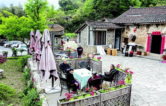 4月13日,在遠安縣龍鳳村龐家灣網(wǎng)紅景區(qū)——拈花谷民宿,游客們在群山環(huán)抱的古村落里,吃農(nóng)家菜、住古民居,享受生態(tài)田園慢生活。龐家灣自明朝起為龐氏族人聚集地,有明清風格天井房20多棟。近年來,遠安縣發(fā)展全域旅游,利用龐家灣、金家灣、翟家?guī)X、武陵峽等村落的獨特地理環(huán)境與特色民居,將其打造成集吃住行、游玩娛樂購物等于一體的精品民宿旅游區(qū)。(湖北日報全媒記者 劉曙松 通訊員 黃海濤 劉中一 攝)