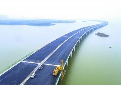 作為西四環(huán)中的重要一段,全長(zhǎng)5.1公里的后官湖大橋,橫穿整個(gè)湖面。“后官湖是戰(zhàn)略后備水源地,因此在建設(shè)中,我們特意在橋面預(yù)制了雨污分流設(shè)施。”莊新宇如是說(shuō)。根據(jù)指引,記者在橋面看到,大橋兩側(cè)的排水溝中,每隔5米就設(shè)置有一低一高兩個(gè)排水孔。